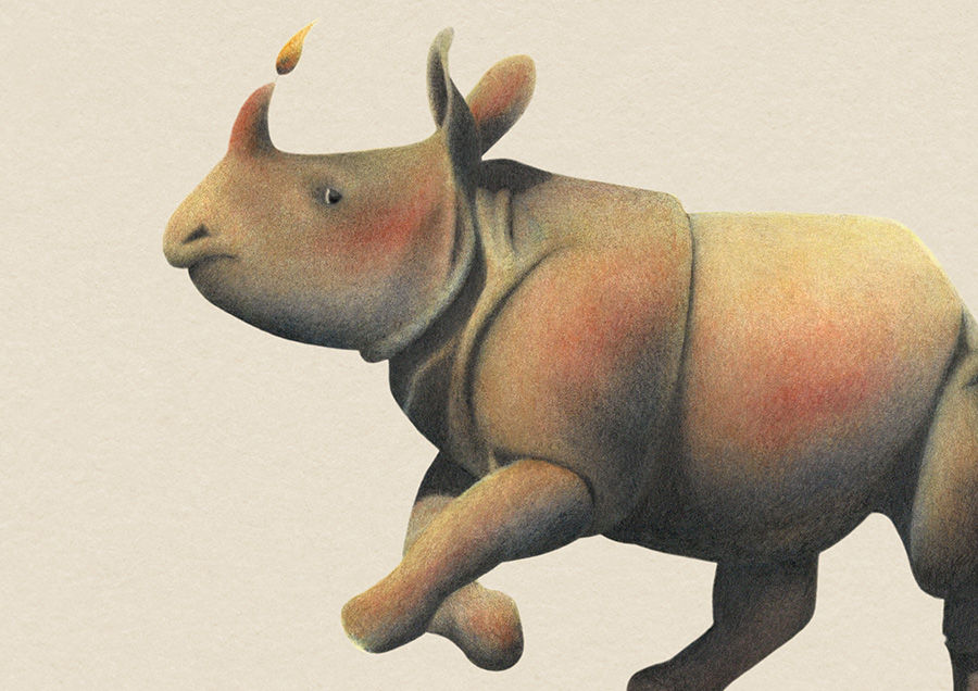 A Red Chalcosoma Atlas climbing a Gentoo Penguin